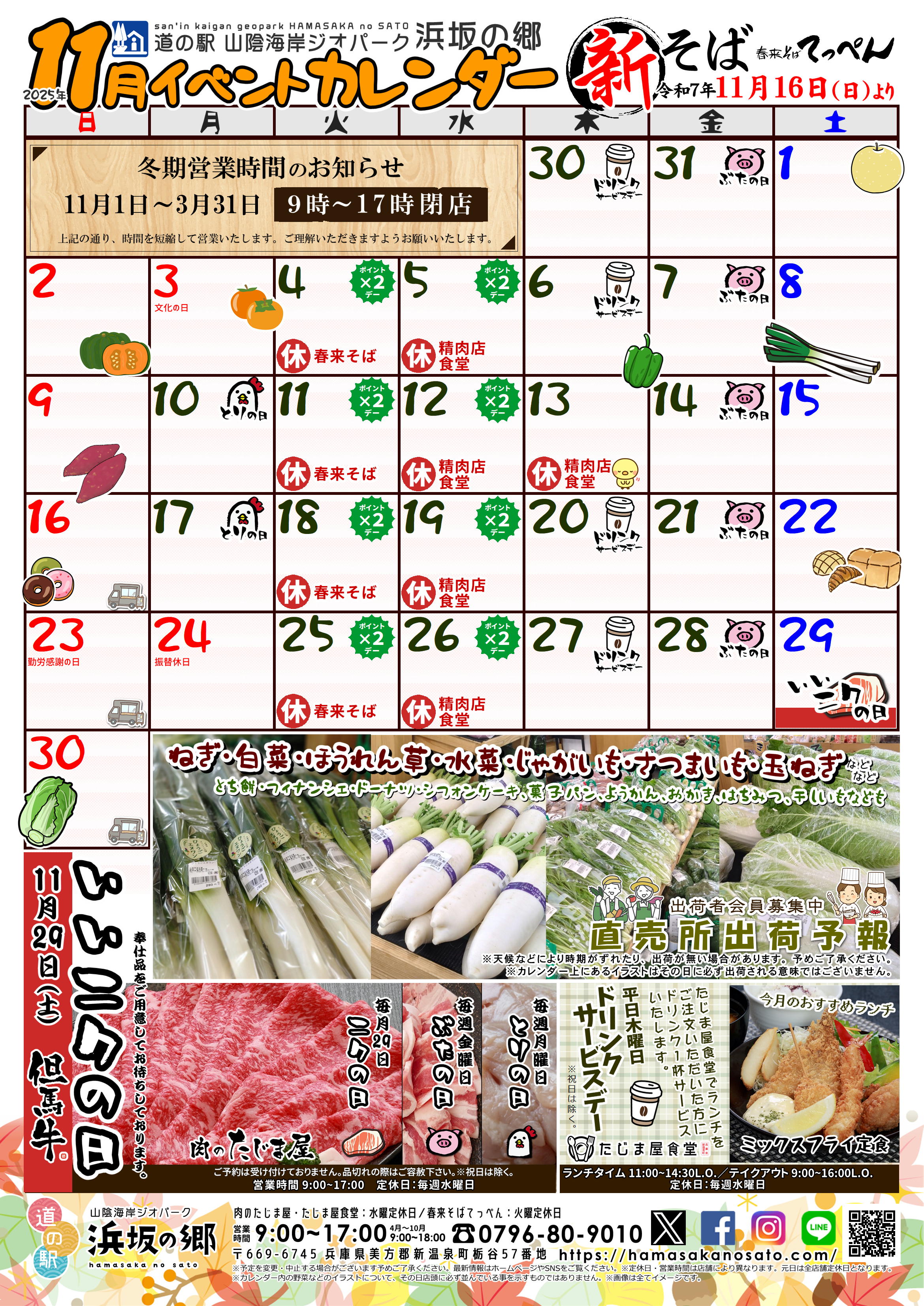 浜坂の郷2025年11月のイベントカレンダーをUPしました。