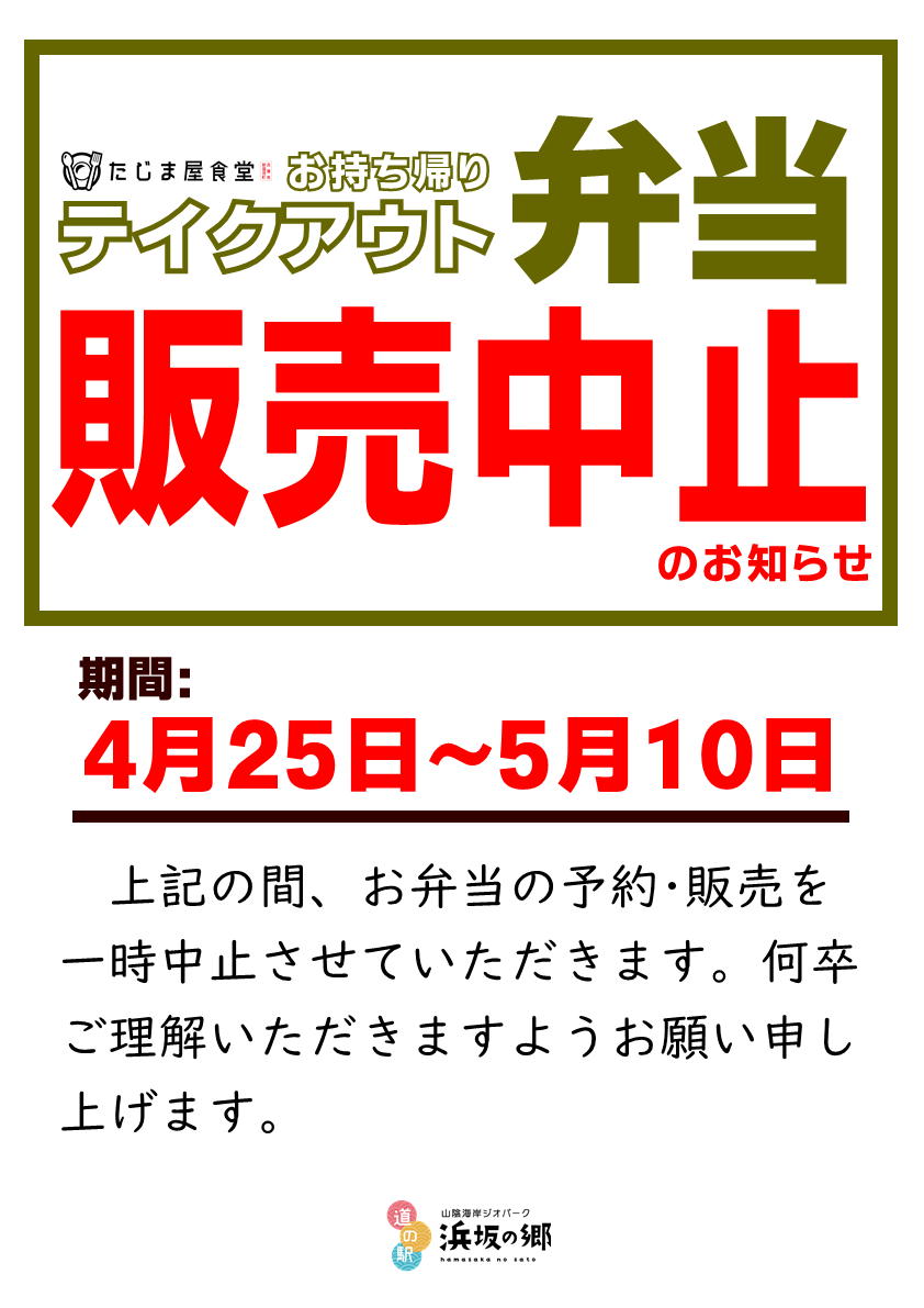 次の期間、お弁当の予約・販売を一時中止させていただきます。